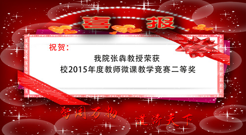日前,学校公布2015年校教师微课教学竞赛评比结果,我院张�教授荣获二等奖。